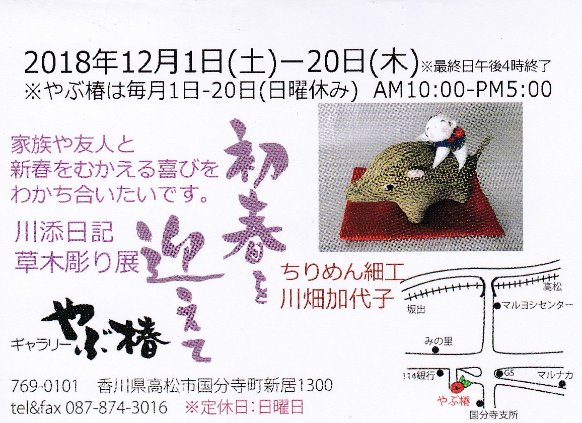 高松市国分寺町のギヤラリ-やぶ椿です。 毎月の展覧会のご案内をさせていただきます。
