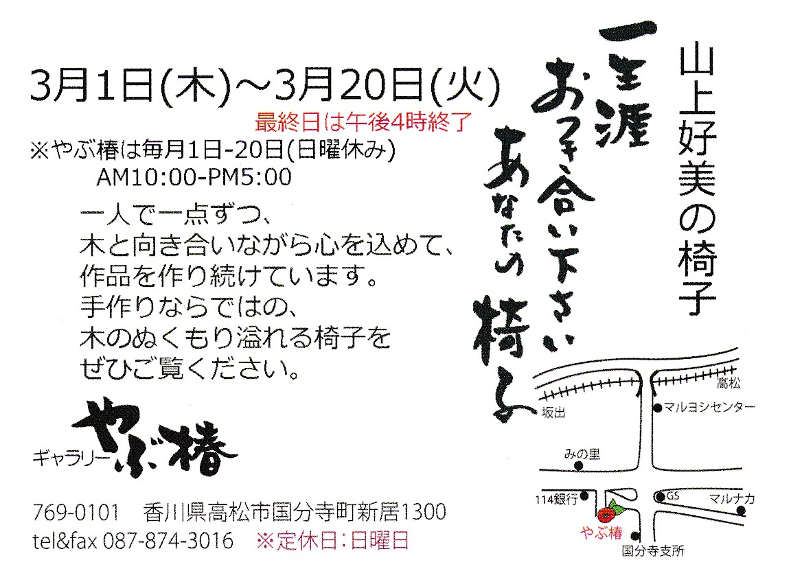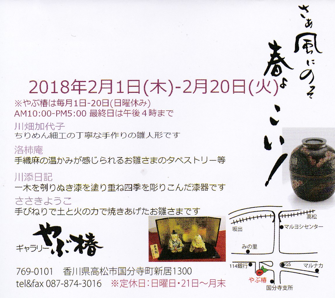 高松市国分寺町のギヤラリ-やぶ椿です。 毎月の展覧会のご案内をさせていただきます。