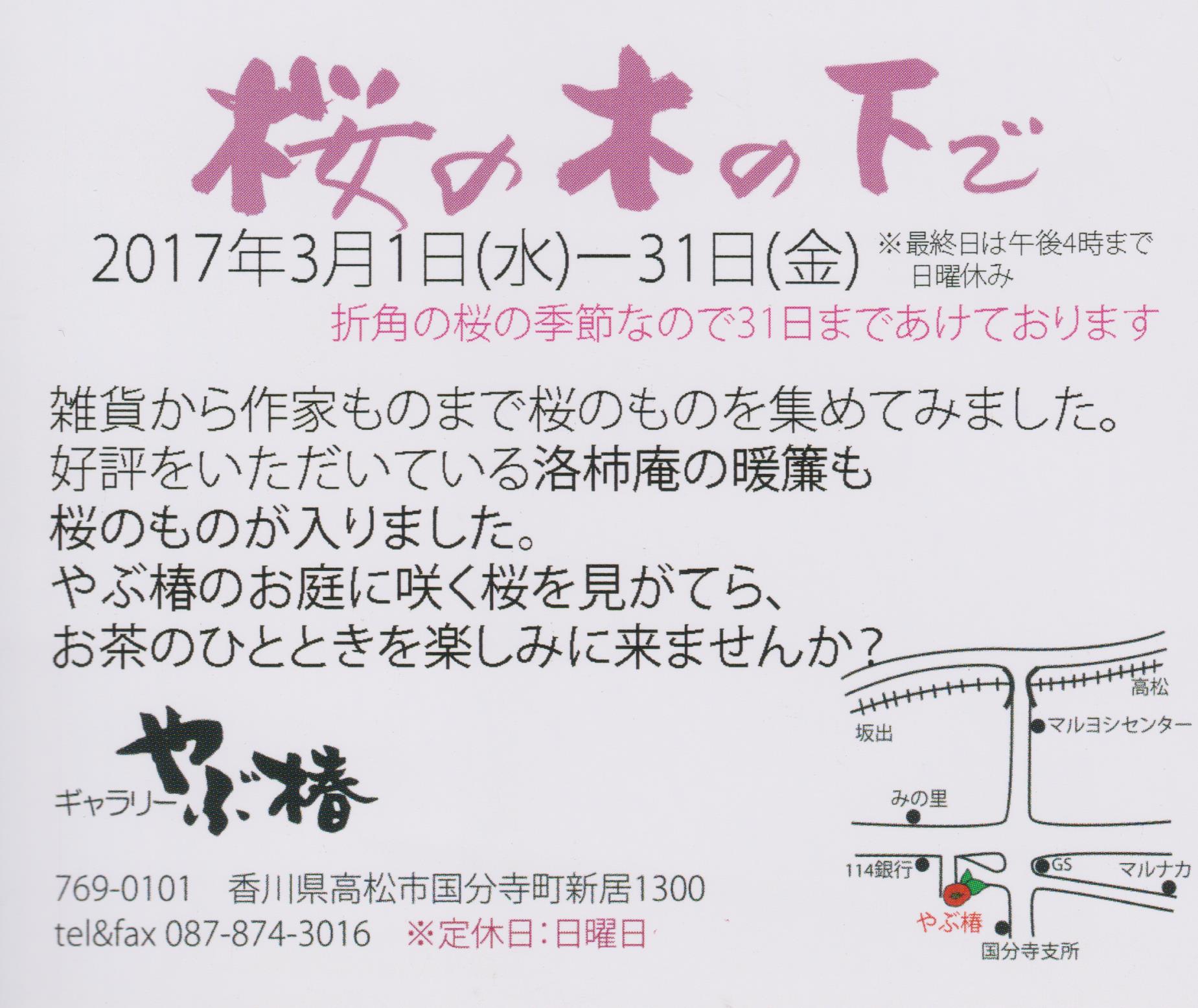 高松市国分寺町のギヤラリ-やぶ椿です。 毎月の展覧会のご案内をさせていただきます。